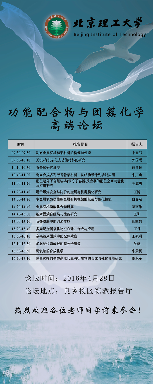 【化學(xué)學(xué)院】功能配合物與團(tuán)簇化學(xué)高端論壇