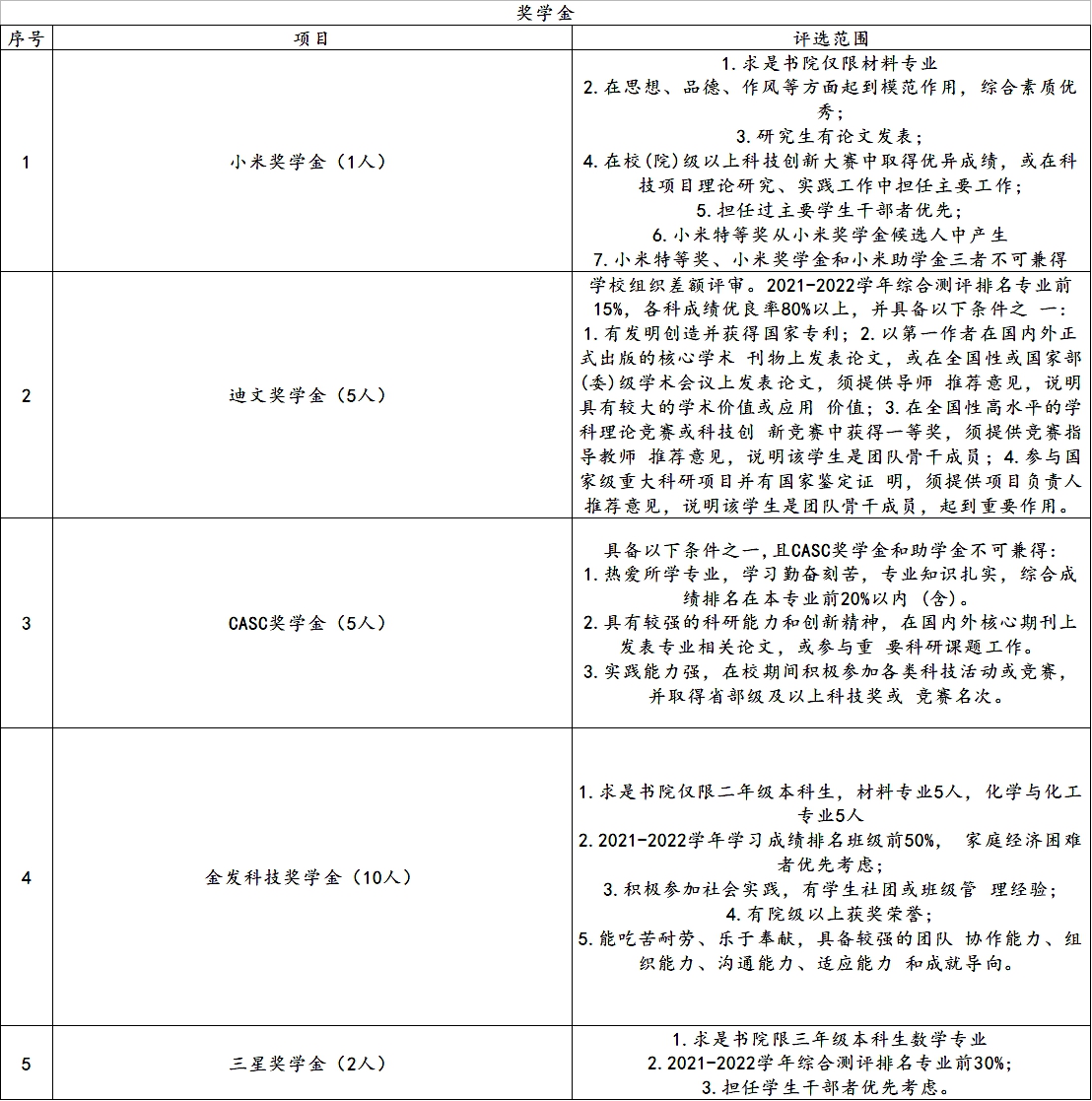 現(xiàn)開展2022年社會捐助類獎助學(xué)金(部分)的評選推薦工作,有關(guān)事宜通知如下。