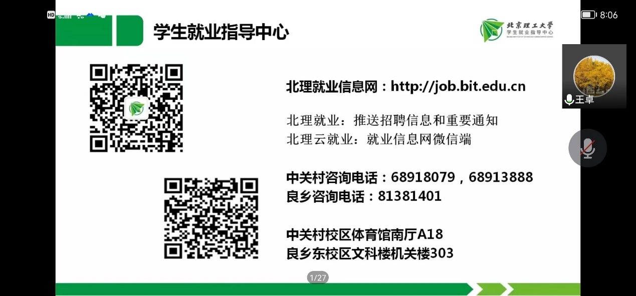 為了讓畢業(yè)生及時了解當(dāng)前社會就業(yè)形勢,進一步提高就業(yè)意識和積極性,同時遵守疫情防控要求,求是書院于2022年9月14日晚在線上舉行2019級學(xué)生就業(yè)動員大會。北京理工大學(xué)就業(yè)指導(dǎo)中心教師、擺渡人工作室副主任王卓,求是書院輔導(dǎo)員紀(jì)冰雪老師以及求是書院2019良鄉(xiāng)校區(qū)全體學(xué)生參加本次大會。