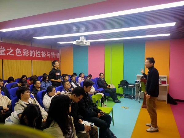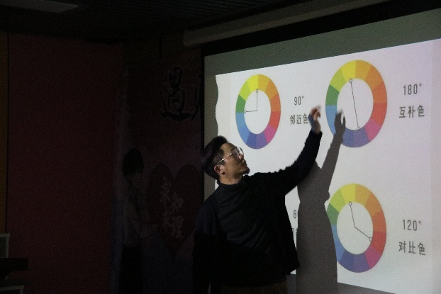 本次講座的主題是帶大家了解色彩中蘊(yùn)含的性格與情緒以及色彩的搭配。講座開始后,首先由汪建宇老師簡(jiǎn)單介紹了知行講堂的來源、活動(dòng)內(nèi)容以及重大意義,并向大家介紹了主講人龔佑軍老師。隨后講座正式開始,龔佑軍老師先是給出幾種顏色,在與大家有趣的互動(dòng)中講述了不同場(chǎng)合顏色的巧妙應(yīng)用以及各種顏色帶來的生理效應(yīng),引出了講座主題。龔老師指出,從一個(gè)人喜歡的顏色中就可以看出一個(gè)人的性格,比如紅色對(duì)應(yīng)著表現(xiàn)型人格,而黃色對(duì)應(yīng)著領(lǐng)導(dǎo)型人格等,并通過著名畫家梵高的例子為大家具體說明了色彩與性格的對(duì)應(yīng)關(guān)系。隨后,龔老師又通過各種電影中色彩的情緒表達(dá)向大家介紹了色彩與情緒的內(nèi)在聯(lián)系,以在電影《辛德勒的名單》中的紅衣女孩為例等讓大家有了更深入的了解。然后,龔老師向大家介紹了不同的色彩搭配會(huì)給人怎樣的感覺,也給大家的日常穿搭等提出了一些建議。