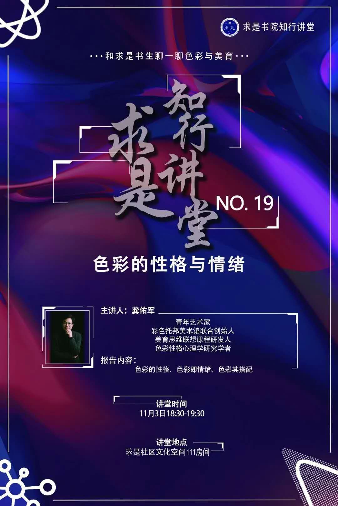 求兮盼兮,是理是你。近期的北理,主打顏色已從翠綠走過金黃,知行講堂也隨著季節(jié)更替的步伐如期而至。說到色彩,大家腦海中會(huì)浮現(xiàn)出一副怎樣的畫面呢?是天高海闊的藍(lán)色領(lǐng)域、還是一望無際的綠色草原、抑或是爭(zhēng)奇斗艷的紅色花海。而這些不同色調(diào)的圖畫,又暗含了我們?cè)鯓拥男愿窈颓榫w呢?