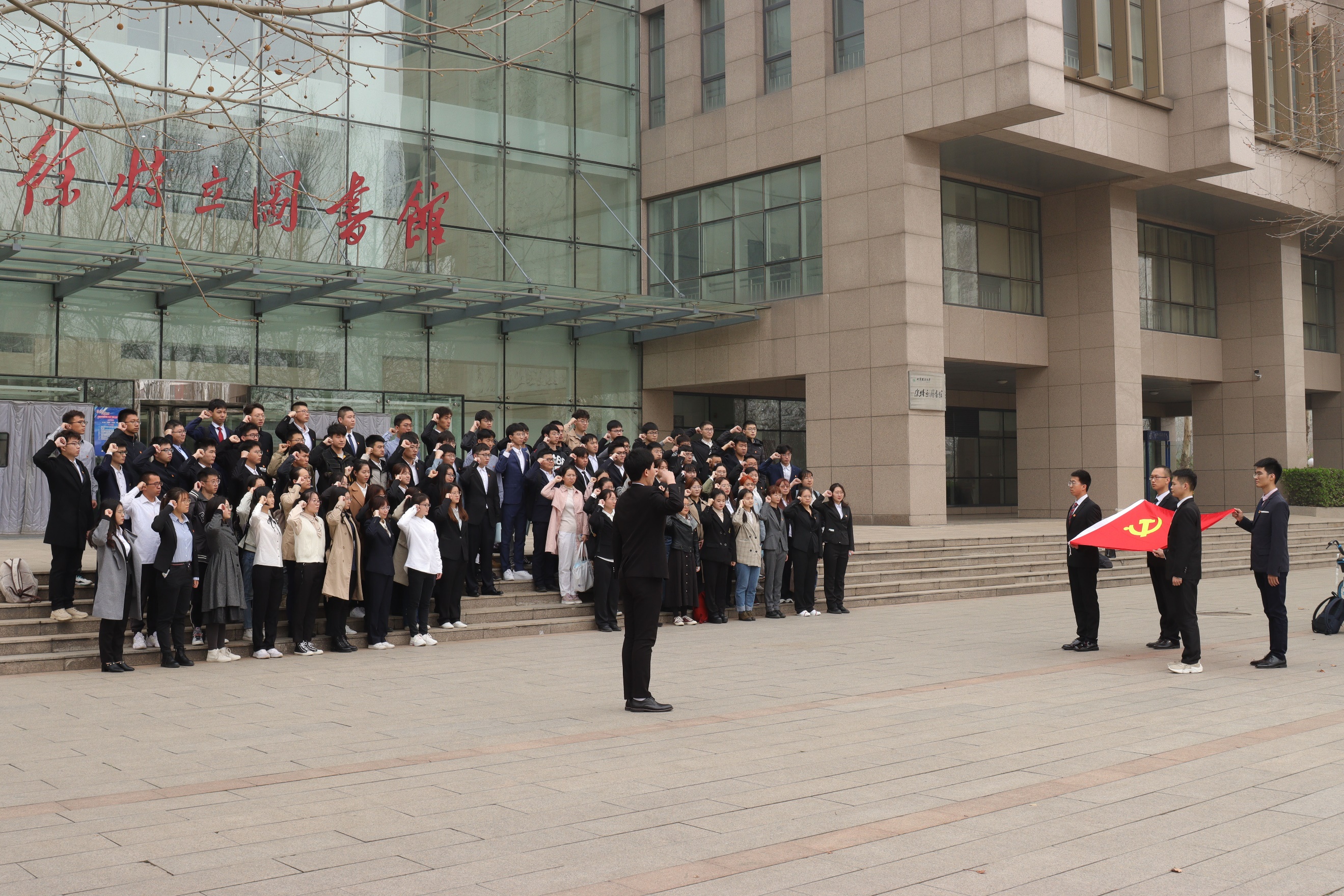 “我志愿加入中國共產黨,擁護黨的綱領,遵守黨的章程,履行黨員義務,執(zhí)行黨的決定,嚴守黨的紀律,保守黨的秘密,對黨忠誠,積極工作,為共產主義奮斗終身,隨時準備為黨和人民犧牲一切,永不叛黨!”3月27日中午,在徐特立圖書館門前,再次響起嘹亮鏗鏘的入黨誓詞。108名師生黨員在徐特立圖書館門前莊嚴宣誓。