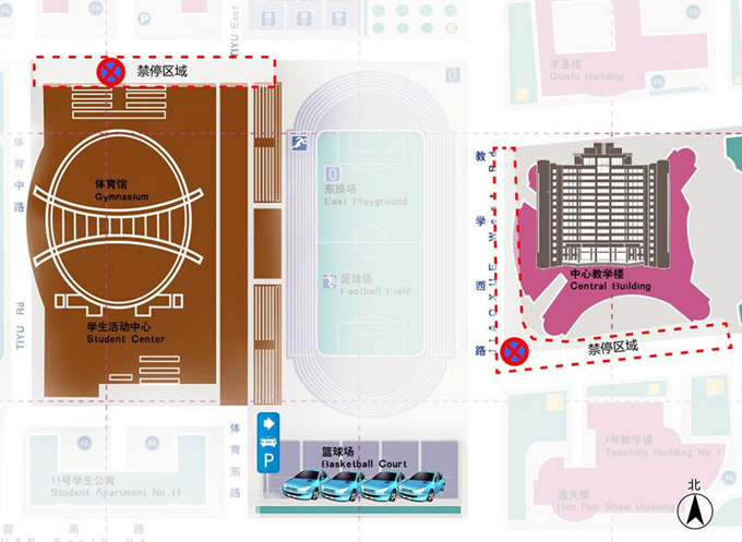 (2)本周六(9月15日)零點至周日(9月16日)24時體育館北廣場禁止停車。