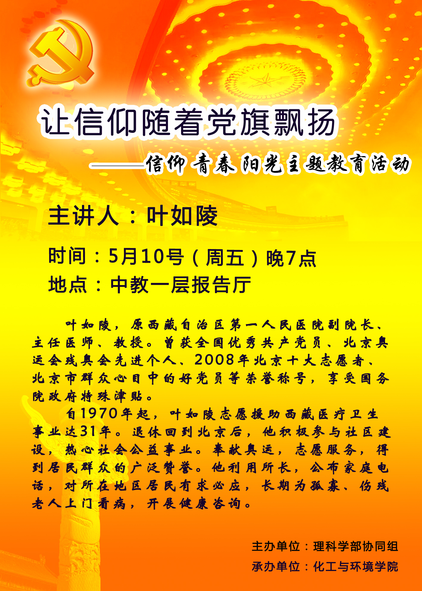 讓信仰隨著黨旗飄揚——【信仰 青春 陽光】主題教育活動講座通知