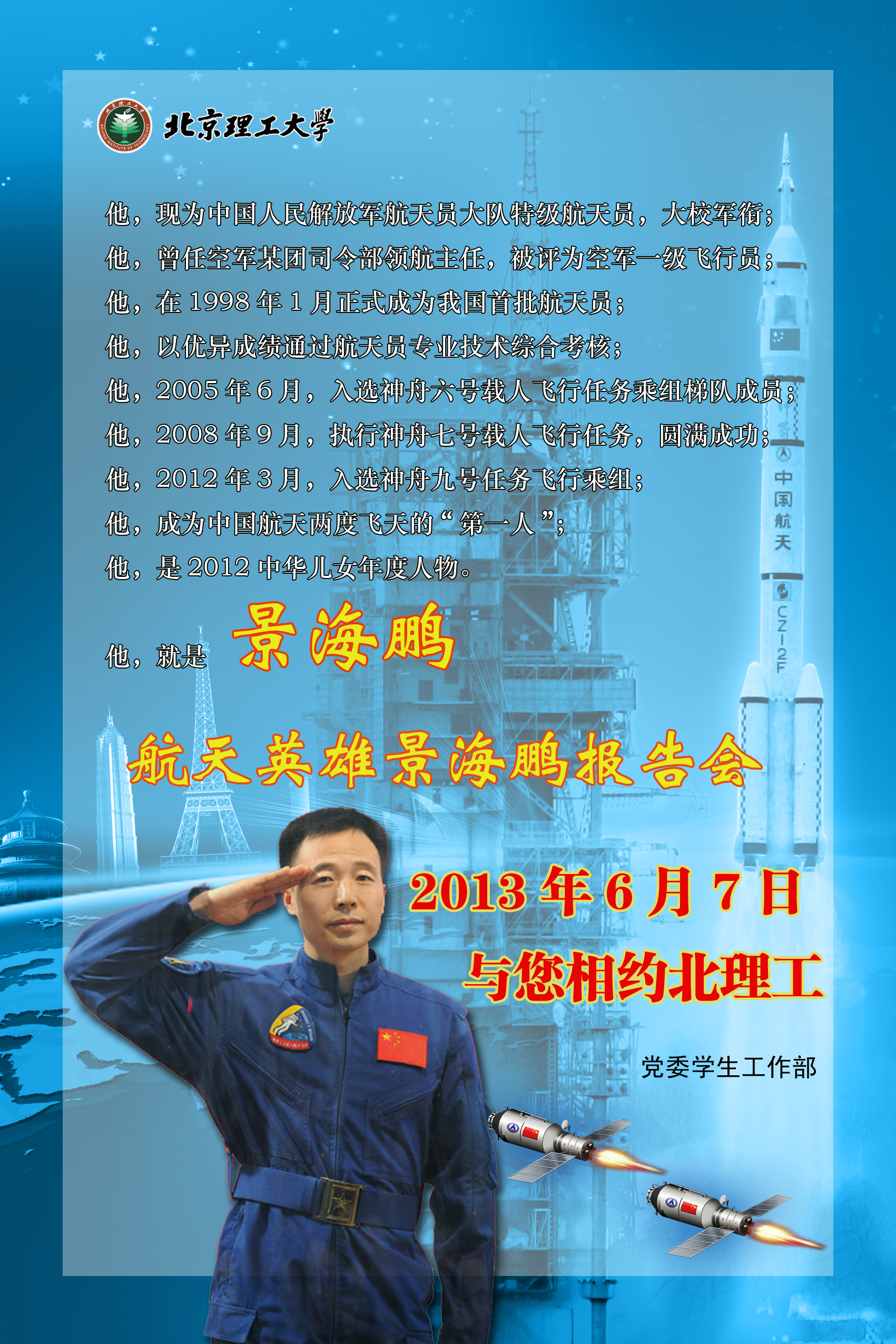 6月7日航天英雄景海鵬報(bào)告會(huì)預(yù)告