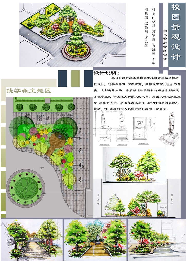 錢(qián)學(xué)森塑像校園景觀設(shè)計(jì)方案展示