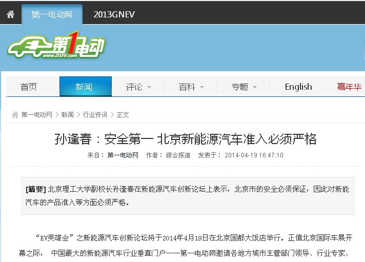 【第一電動(dòng)網(wǎng)】北理工孫逢春談北京新能源汽車準(zhǔn)入