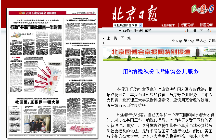 “除了房子,其實(shí)在北京的生活成本還是很低的,各種公共服務(wù)也比較完善。”孫逢春說(shuō),“但城市的資源畢竟有限,應(yīng)該有一個(gè)做出貢獻(xiàn)與享受待遇掛鉤的機(jī)制。”他建議可以建立一項(xiàng)“納稅記錄積分制”,根據(jù)不同時(shí)間長(zhǎng)度的納稅記錄,分別給予不同的教育、醫(yī)療、文化等公共服務(wù)待遇。
