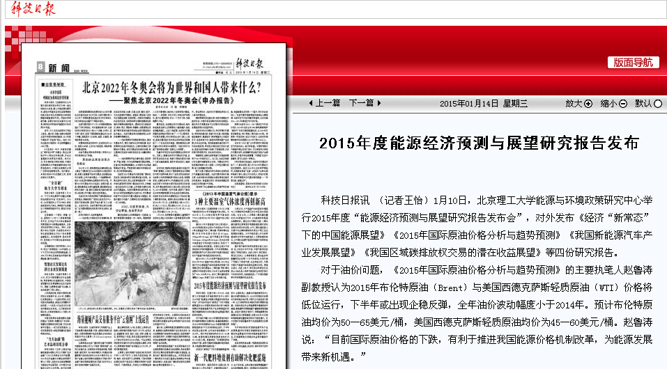 【科技日?qǐng)?bào) 新華網(wǎng) 人民網(wǎng)】北理工發(fā)布2015年度能源經(jīng)濟(jì)預(yù)測(cè)與展望研究報(bào)告