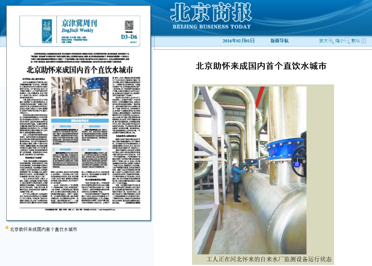 【北京商報(bào)】北理工助懷來成國(guó)內(nèi)首個(gè)直飲水城市