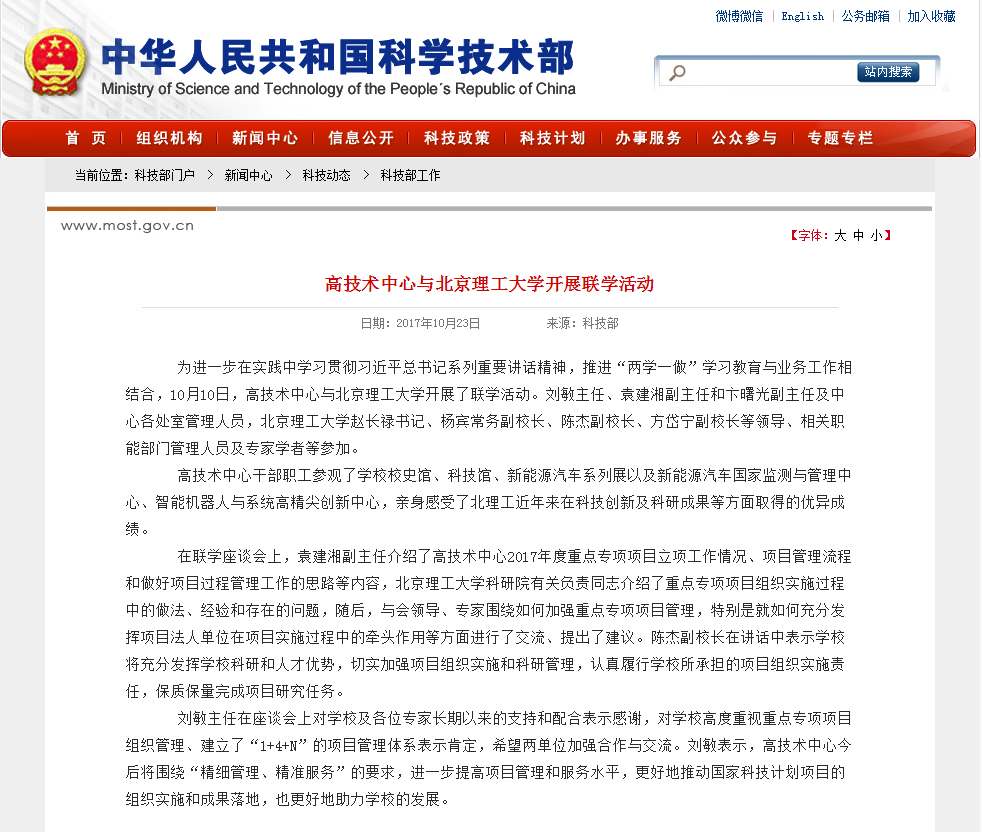 【科技部網(wǎng)】高技術(shù)中心與北京理工大學(xué)開展聯(lián)學(xué)活動
