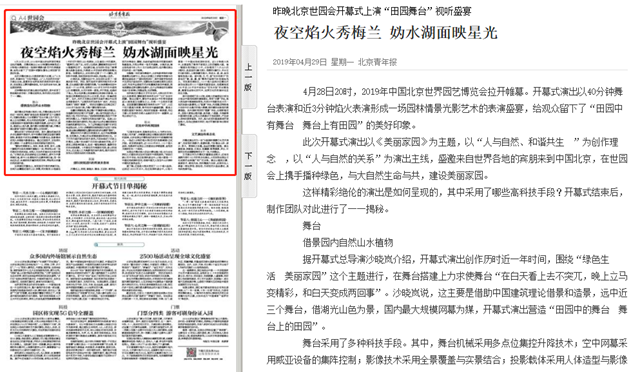 4月28日20時(shí),2019年中國(guó)北京世界園藝博覽會(huì)拉開帷幕。開幕式演出以40分鐘舞臺(tái)表演和近3分鐘焰火表演形成一場(chǎng)園林情景光影藝術(shù)的表演盛宴,給觀眾留下了“田園中有舞臺(tái) 舞臺(tái)上有田園”的美好印象。