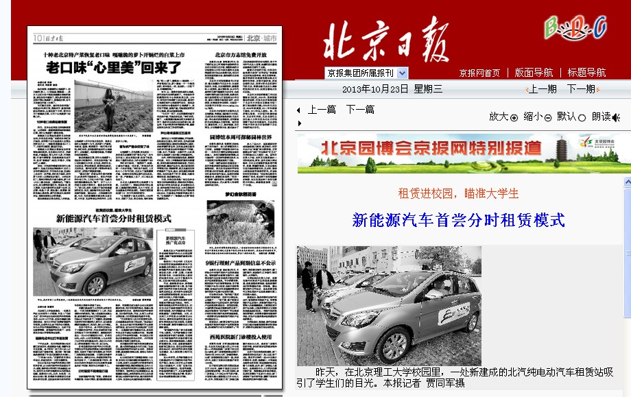 【北京日?qǐng)?bào)】租賃進(jìn)校園,瞄準(zhǔn)大學(xué)生——新能源汽車(chē)首嘗分時(shí)租賃模式