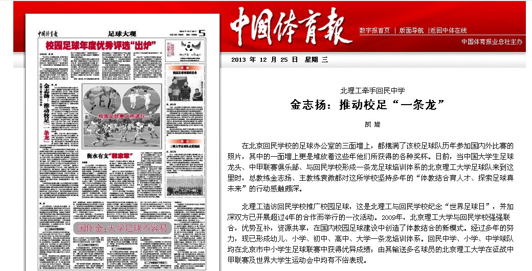 【中國(guó)體育報(bào)】北理工牽手回民中學(xué)