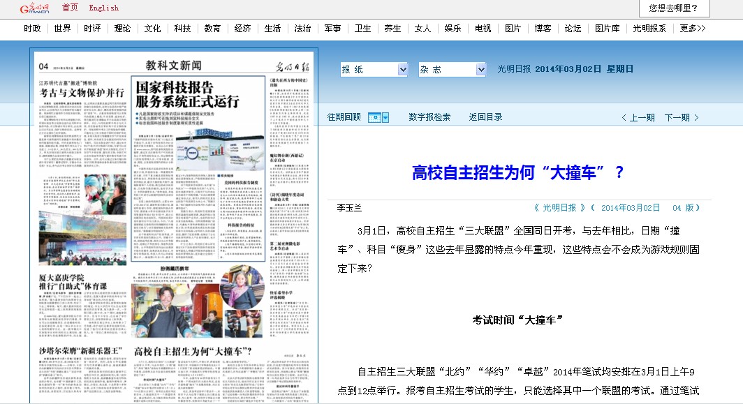 【光明日報(bào)】北理工趙顯利副校長談高校自主招生為何“大撞車”?