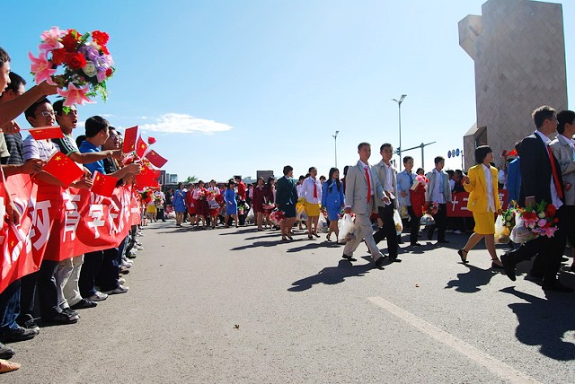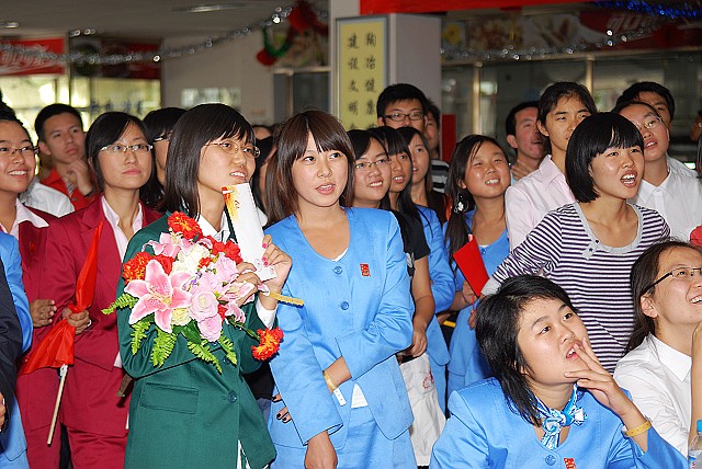 游行結(jié)束返回良鄉(xiāng)校區(qū)后,二十二總隊全體成員受到了校領(lǐng)導(dǎo)、相關(guān)部門及近千余2009級學(xué)生英雄般的歡迎。