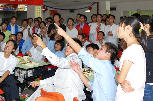 學(xué)校為全體隊員準(zhǔn)備豐盛的自助餐,為他們洗去近14個小時的辛勞,同學(xué)們在就餐的同時還在激動地觀看閱兵式節(jié)目的重播。