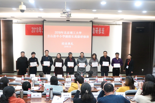 侯愛軍以“感謝、感動(dòng)、祝福、歡迎”四個(gè)關(guān)鍵詞作總結(jié)發(fā)言:一是感謝理工附中、附小、幼兒園、各部門、北京市八一學(xué)校、北京一零一中等機(jī)構(gòu)的領(lǐng)導(dǎo)專家們對(duì)本期培訓(xùn)的傾情奉獻(xiàn)和無私分享;二是感動(dòng)校長學(xué)員們?cè)谂嘤?xùn)中所體現(xiàn)出的對(duì)教育事業(yè)的無限熱愛和團(tuán)隊(duì)精神;三是祝福校長學(xué)員們學(xué)有所長、學(xué)有所獲,將本次研修作為一個(gè)新的起點(diǎn),一個(gè)新的啟航;祝福大家回到工作崗位后,在方山縣縣委縣政府領(lǐng)導(dǎo)下,和學(xué)校校長、全體師生共同努力把方山縣基礎(chǔ)教育質(zhì)量提升,在辦學(xué)治校理念、校園文化建設(shè),課程教學(xué)模式改革、科技育人創(chuàng)新,辦學(xué)共同體構(gòu)建等各個(gè)方面取得新的突破,努力辦好方山縣人民滿意的基礎(chǔ)教育;四是歡迎大家?;乇崩砉た纯?,為北理工輸送推薦優(yōu)秀學(xué)子。教師發(fā)展中心將繼續(xù)在學(xué)校黨委的統(tǒng)一領(lǐng)導(dǎo)下,協(xié)同各部門持續(xù)幫扶方山縣基礎(chǔ)教育的振興和提升。