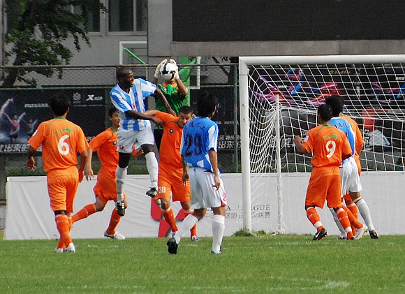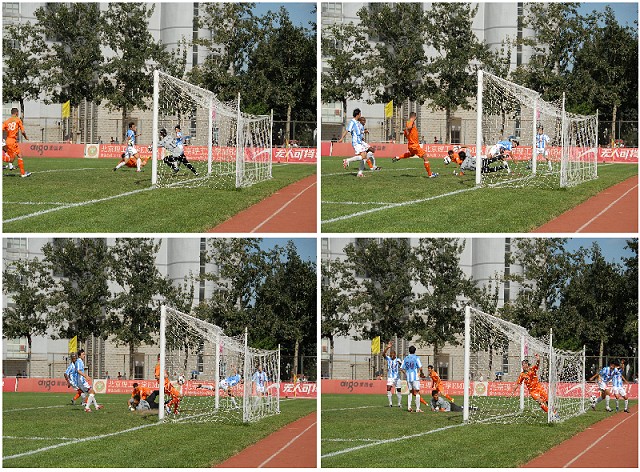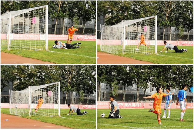 在上半場補時階段,沈陽東進連續(xù)利用角球定位球等攻勢向北理工腹地發(fā)動猛攻,但北理門將孫程卻充分發(fā)揮了其身高力量優(yōu)勢,高接抵擋將力保本隊城門不失。上半場北理工1比0領先沈陽東進。
