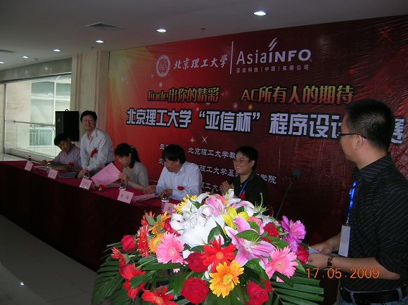 2009年5月17日,北京理工大學(xué)第三屆“亞信杯”程序設(shè)計(jì)大賽,在中關(guān)村校區(qū)和良鄉(xiāng)校區(qū)機(jī)房同時(shí)舉行。大賽共吸引了全校不同專業(yè)的250支隊(duì)伍571名學(xué)生參加。這次大賽由教務(wù)處主辦,基礎(chǔ)教育學(xué)院與軟件學(xué)院共同承辦,亞信科技(中國(guó))有限公司提供贊助,計(jì)算機(jī)實(shí)驗(yàn)教學(xué)中心為大賽提供了兩個(gè)校區(qū)的計(jì)算機(jī)上機(jī)環(huán)境,保證了大賽的順利進(jìn)行。