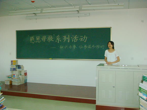 為了堅持全面協調可持續(xù)發(fā)展的基本要求,機電學院05級黨支部舉辦了“感恩母校”系列活動之“知識傳承”征書送書活動,將大四學生四年來所用的教材送給良鄉(xiāng)校區(qū)的同學。6月9日下午,在良鄉(xiāng)校區(qū)成功舉辦了交接儀式,機電學院07級輔導員徐瑩瑩老師,05級黨支部黨員以及07級的各班級干部參加了此次活動。