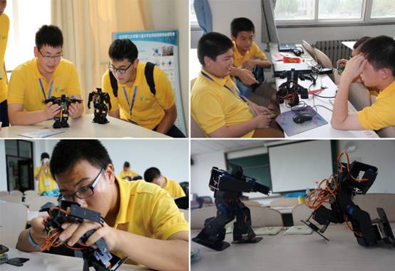 夏令營(yíng)自7月12日-19日共8天,其中安排了理論學(xué)習(xí)12學(xué)時(shí),集中學(xué)習(xí)了機(jī)器人基本組成原理及SolidWorks三維建模軟件基礎(chǔ)知識(shí)及實(shí)用技巧;設(shè)計(jì)裝配14學(xué)時(shí),集中講述了機(jī)器人裝配的方法、步驟、過程及實(shí)際操作;編程實(shí)踐14學(xué)時(shí),集中進(jìn)行了編程練習(xí)、遙控操作等內(nèi)容;競(jìng)技比賽10學(xué)時(shí),分類別進(jìn)行了機(jī)器人舞蹈、機(jī)器人格斗等競(jìng)技比賽;實(shí)地參觀10學(xué)時(shí),對(duì)良鄉(xiāng)校區(qū)圖書館、大學(xué)生創(chuàng)新實(shí)踐基地及校園進(jìn)行了參觀等,總體課程共計(jì)約60學(xué)時(shí)。課程安排周密、詳盡,使?fàn)I員達(dá)到理論與實(shí)踐相結(jié)合,學(xué)習(xí)與提高相結(jié)合,競(jìng)技與趣味相結(jié)合,圓滿完成既定目標(biāo)。
