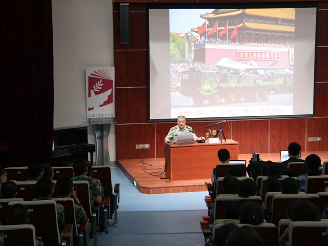 編輯:王文博 審核:徐貴寶 閱讀次數(shù):8月28日,由北京理工大學武裝部承辦的北理工“百家大講堂”在良鄉(xiāng)校區(qū)綜教報告廳舉行,全軍外宣專家房兵大校以“從大閱兵看中國武裝力量大轉(zhuǎn)型”為題作專題報告,軍訓旅3900余名學員通過現(xiàn)場教學與視頻直播相結(jié)合的方式聆聽了此次講座。